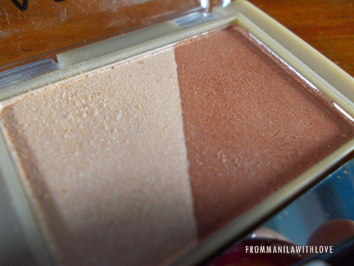 From the swatches you can see the right one's like an orange-brown coppery shade. Both are shimmery but when blended the copper one's glitter/shimmers are less obvious than the lighter one. I like the colors well enough. And the packaging itself looks pretty, albeit flimsy. Definitely more excited about the light gold champagne color.